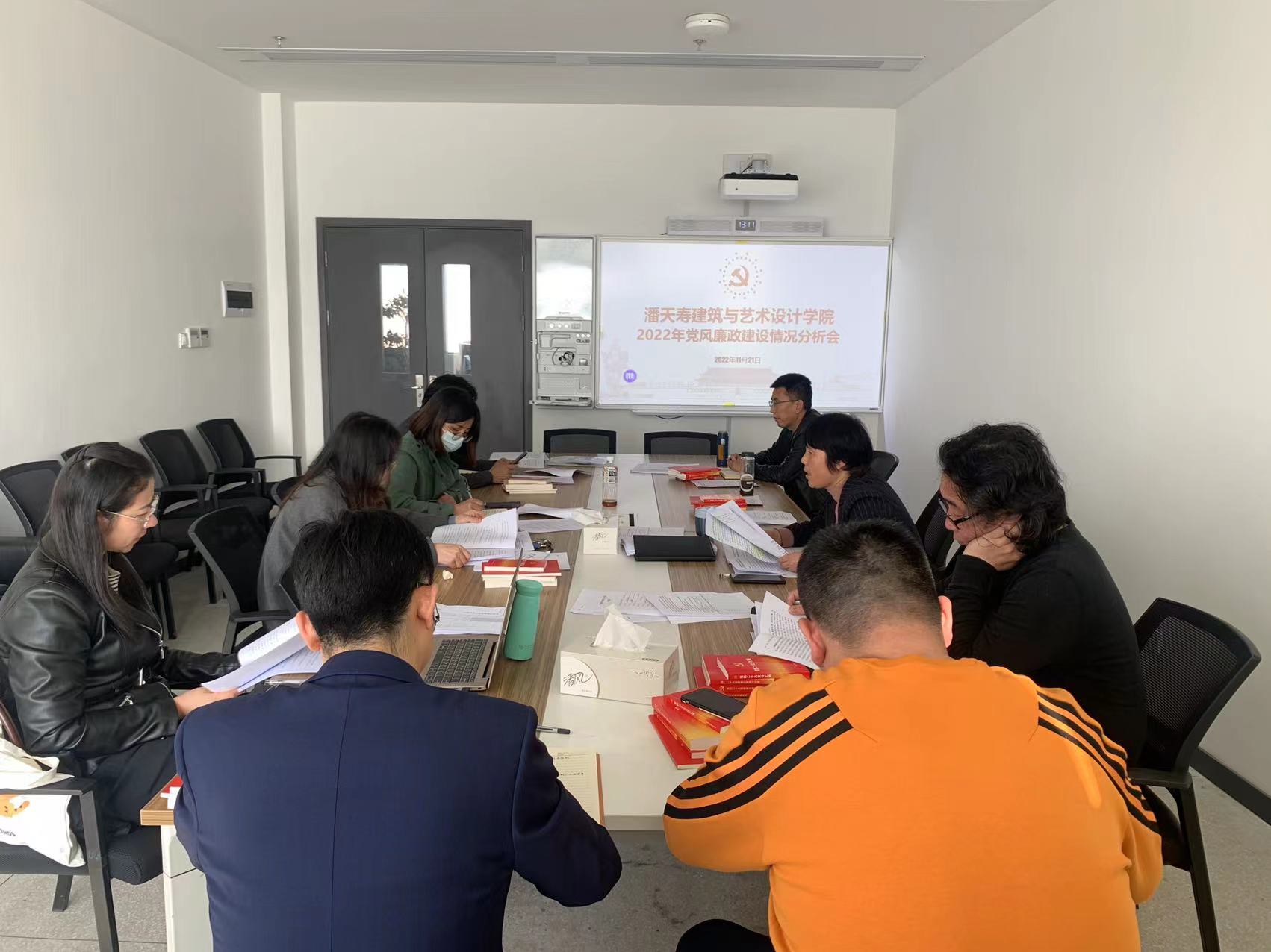 在学院708会议室召开2022年党风廉政建设情况分析会,学院领导班子成员、党委委员和党风廉政建设相关老师参加会议。会议由学院党委书记徐一萍主持。