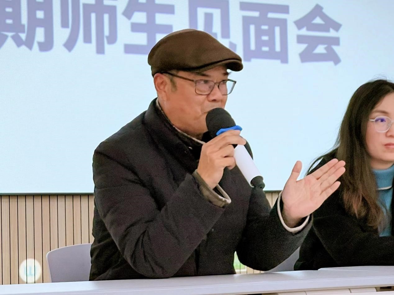 系主任王泽闻随后对系里平面设计专业的整体情况和专业排名作了介绍,同时也提醒大家要克服“社恐”乃至“社死”,对所学的专业知识要及时向老师反馈,与老师保持积极的沟通,这样才能通过完成作业,实现专业技能的有效提升。