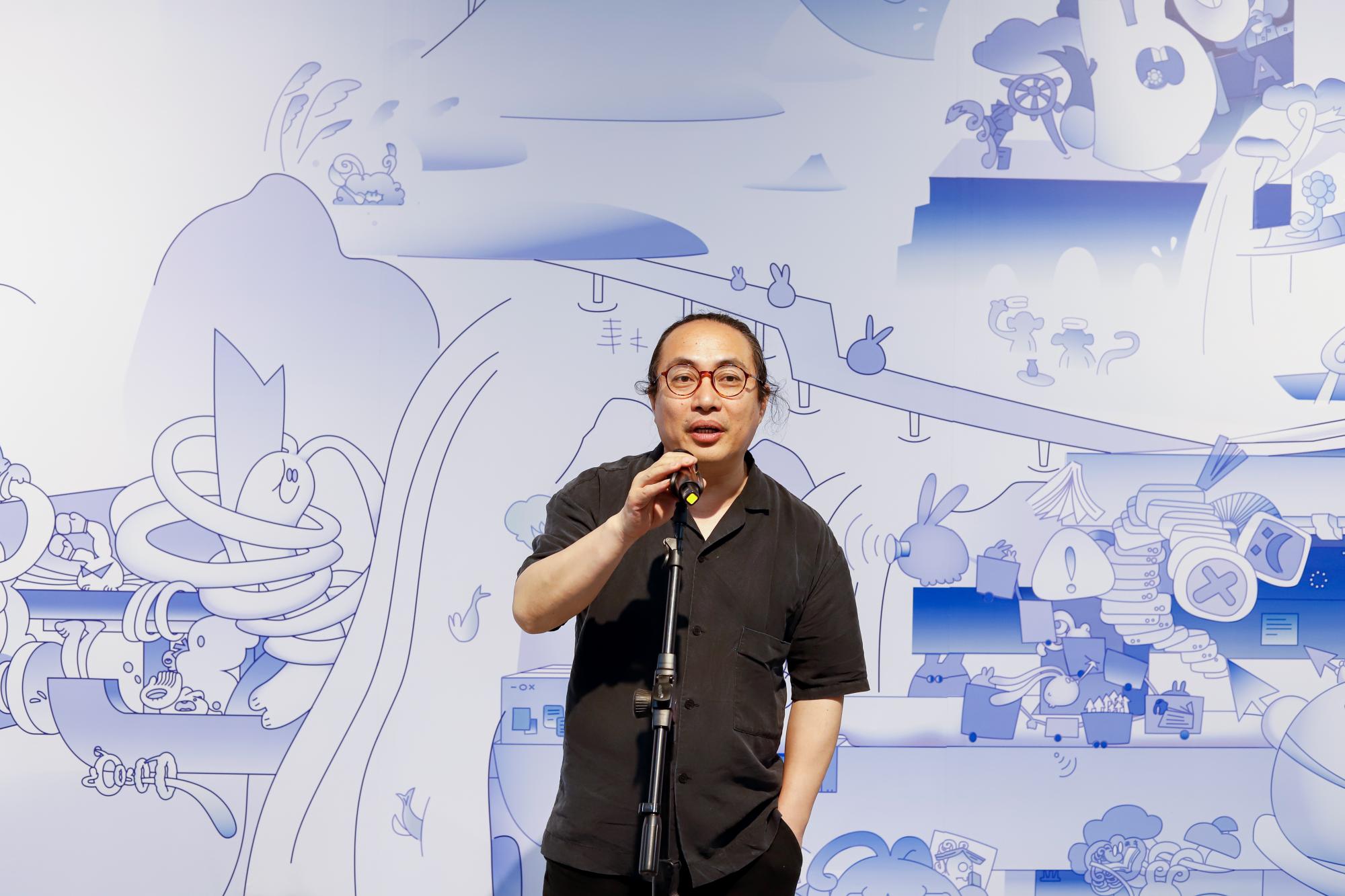 此次毕业展策展人邵良老师则简要介绍了此次策展落地的过程,并鼓励了同学们作为“未来的设计师”,要让作品学会说话,要创造出更具沉浸式体验的艺术作品,从而更好地走向市场,拥抱大众,真正做好艺术的传播工作。