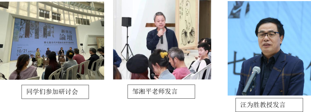 2023年10月21日,“新传统——第七届当代中国画名家学术邀请展”在嘉兴市桐乡市文化馆子恺画院开展,我院美术系研究生、本科生一行18人在邹湘平老师带领下前往观展并参与研讨会。中国人民大学名家工作室导师汪为胜教授作品进行了分析指导。