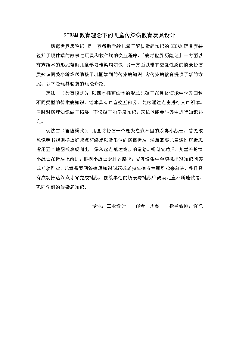 《STEAM教育理念下的儿童传染病教育玩具设计》