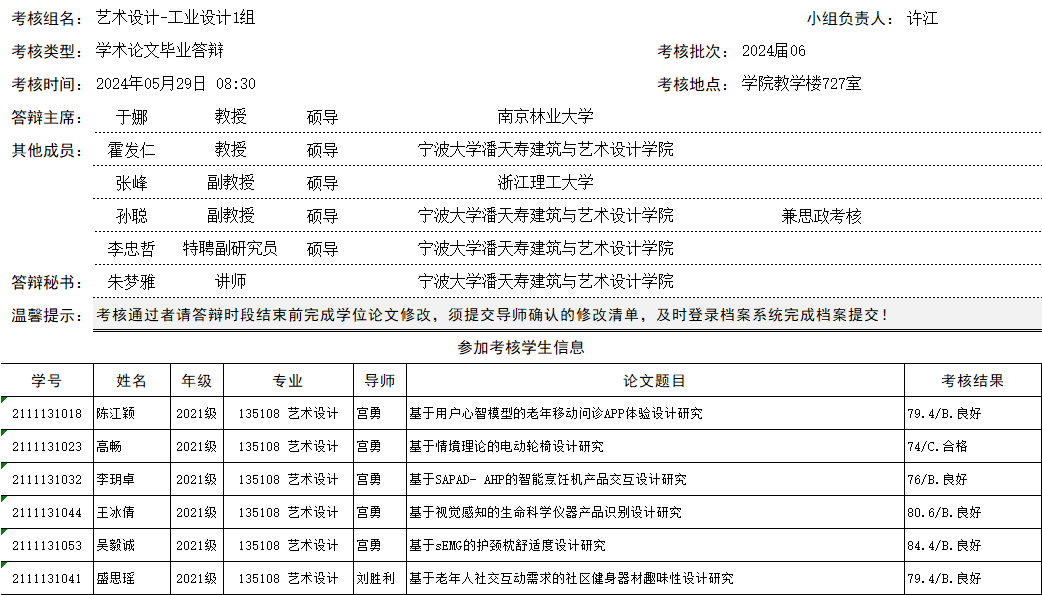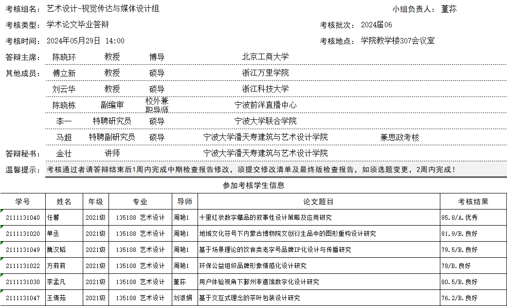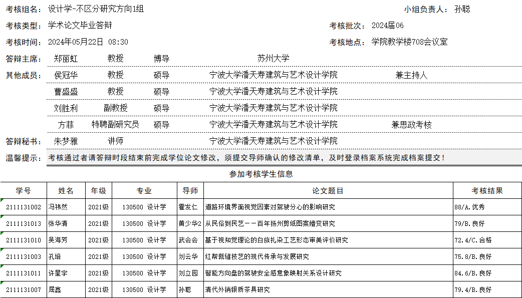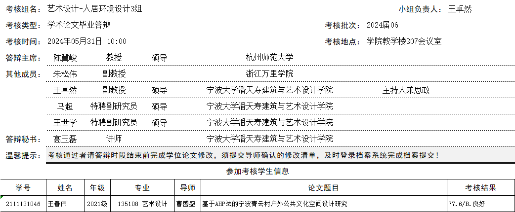 亚洲情色 2024届06批次潘天寿建筑与亚洲情色 硕士学位论文毕业答辩结果公示