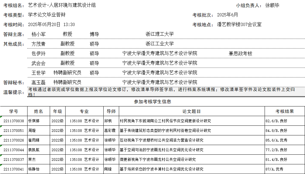 亚洲情色 2025届06批次潘天寿建筑与亚洲情色 硕士学位论文答辩结果公示