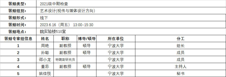 参加答辩学生须于5月25日前完成中期检查布展,要求专硕每人作品不少于6幅,按两个版面排版展出;学硕每人作品不少于3幅,按一个版面排版展出,展出版面尺寸规格为1200mmx900mm,版本具体排版格式要求由各专业自定,要求明确:学生姓名 学号 专业 研究方向 和导师。