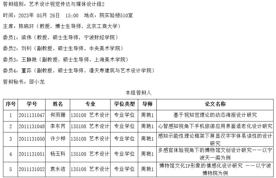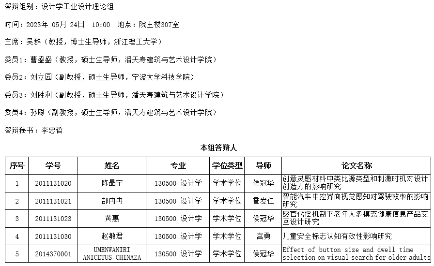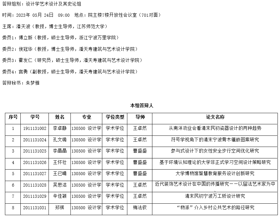 亚洲情色 2023届6月批次潘天寿建筑与亚洲情色 硕士学位论文答辩公告