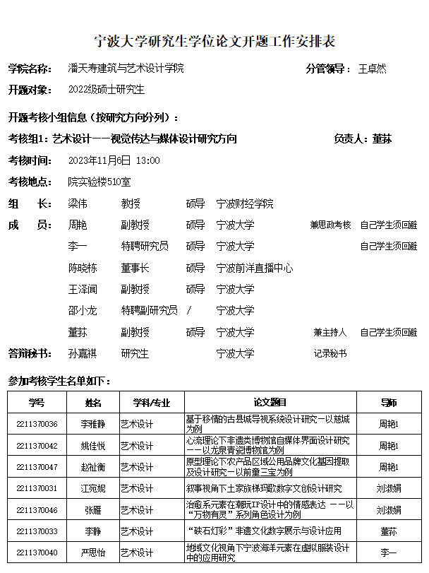 2)艺术设计专业考核组开题作品展时间待定,请参加考核人员提前准备好电子版;
